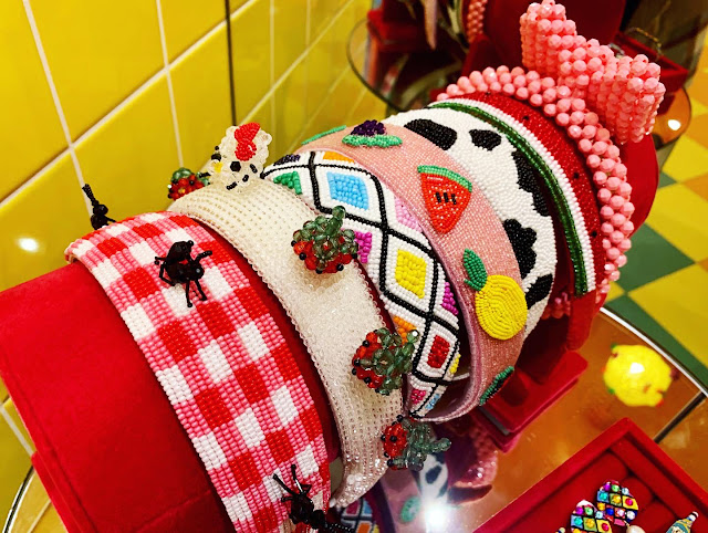 Grab onto the beaded banana and let yourself into Susan Alexandra's sunny bead-filled paradise! Doused in yellow and blue tile with peachy pink accent walls, the former tattoo parlor at 33 Orchard street has been transformed into the dream retail reality of brand founder Susan Korn. Designer Lula Galea and architect Levi Shaw-Faber consciously created a truly exceptional space, capitalizing on and perfecting every detail. Opened on October 29th, the store's candy colored presentation and product depict delight at every turn. The mosaic wishing well is a masterful centerpiece, inviting iconic insta-worth moments. Drop a penny in for extra good fortune! Keep reading to see inside...